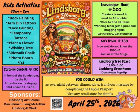 Mellow out and get your groove on during Lindsborg in Bloom! This annual festival features lots of outta sight fun for cool cats and happy hippies! Enjoy shopping, food, drinks, and fun all day long.