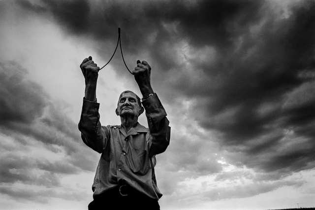 Water witcher Ralph Fraser stood against the boiling summer clouds near Belleville, KS.